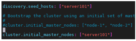 节点名称: cluster.initial_master_nodes: ["server101"]