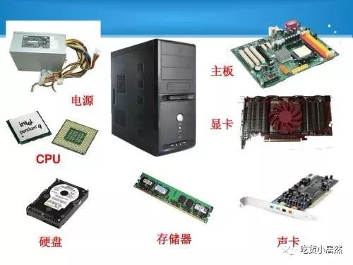 CPU、内存、硬盘、机箱、电源、主板、显卡、声卡、网卡。
