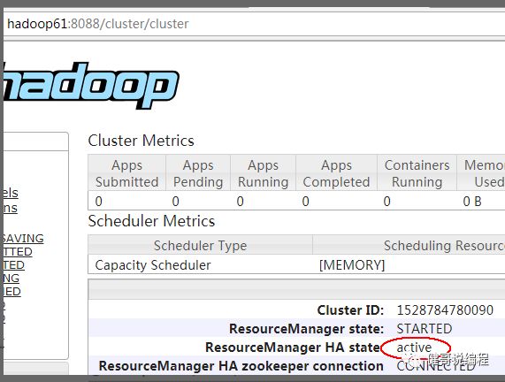再重新启动hadoop61,它会成为standby: