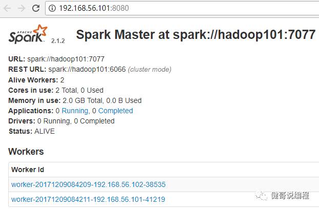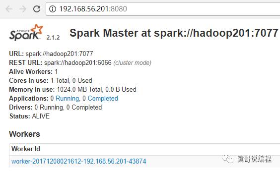 有兴趣的朋友,可以再去查看worker的日志文件,从中你会知道worker节点的端口为8081。