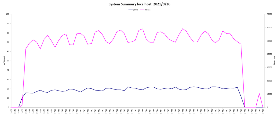 效果:TPCC性能指标大幅提升,IO已不再是系统瓶颈。测试过程nmon性能统计: