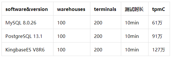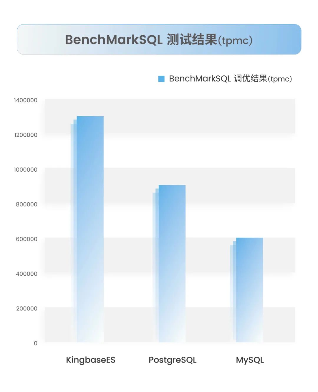 基于综上描述的调优操作和评测,分别获得MySQL、PostgreSQL、KingbaseES优化后的性能指标,具体如下: