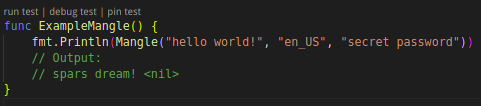 除了单个字符的随机化,d18n 还支持单词级别的随机化替换,可保持语句长度及标点符号不变。根据用户生成的语料库不同,支持不同语言的单词替换。下面是一个英文替换的例子。