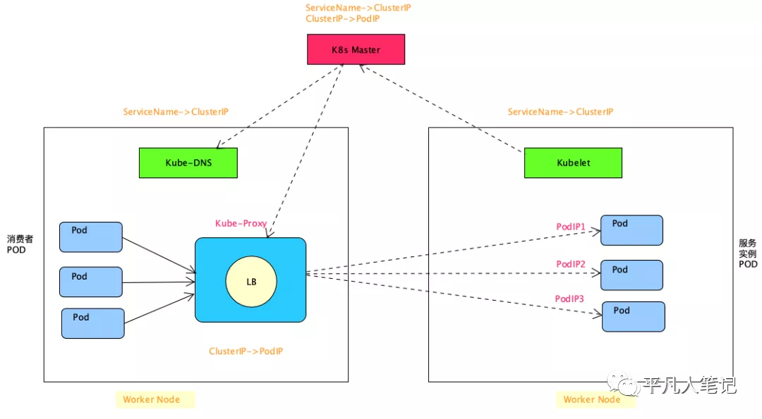 Kube-Proxy主要实现服务发现和负载均衡以及ClusterIP到PodIP的转换