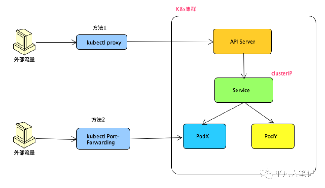 在本机上开启一个转发端口间接转发到k8s内部某个pod端口上去
