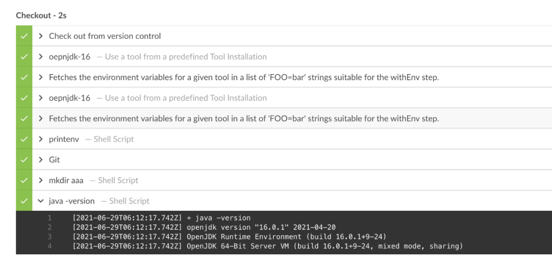 首先我先看看是不是在我的agent oepnjdk-16 Node上执行的。我做了如下操作: