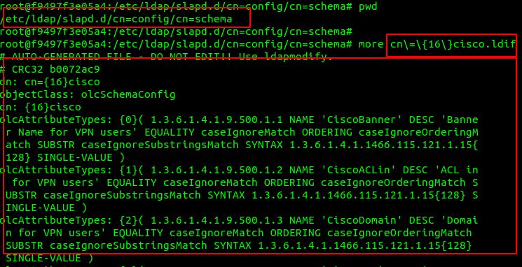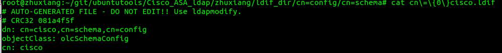 直接查看生成的文件(/etc/ldap/slapd.d/cn=config/cn=schema/cn={16}cisco.ldif):