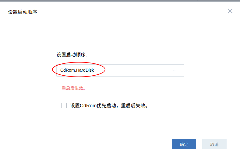 修改云主机启动顺序(CdRom,HardDisk):