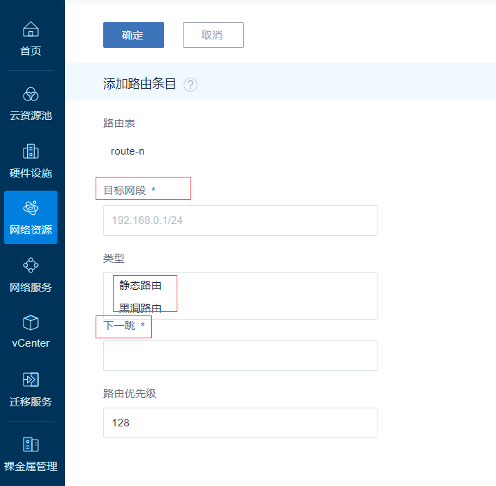 2. 创建云路由规格。