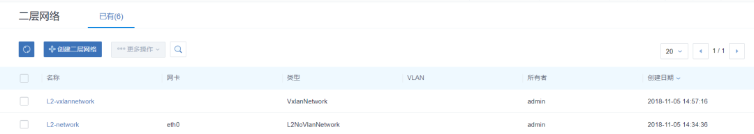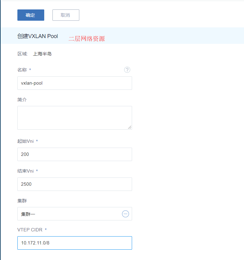 目前二层网络资源如下:二个二层网络 + 一个vxlan-pool