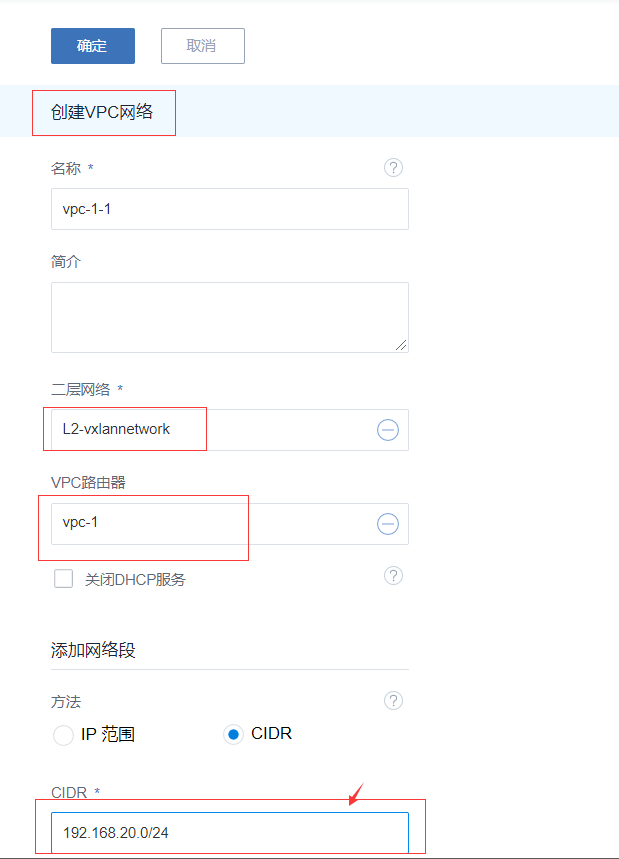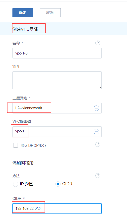 选择二层网络和vpc路由器