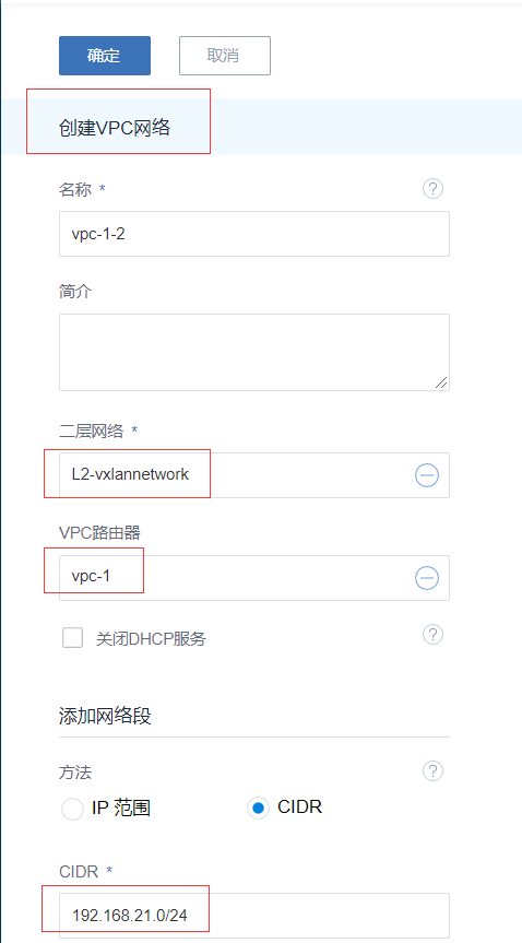 本次实践用于创建三层的VPC网络,并加载此二层网络到相应集群。当前集群不能为空,要有宿主物理机。分别创建二个VPC网络,新建的网络段不可与VPC路由器内任一网络的网络段重叠。即VPC路由器下所有VPC网络(子网)的网络段不可重叠。