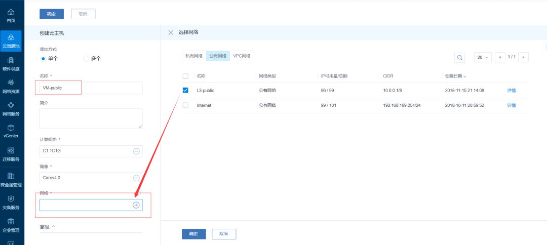 其中管理网络与公用网络可以共同使用之前创建的三层公有网络L3-public。