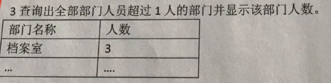 --3、查询出全部部门人员超过1人的部门并显示该部门人数