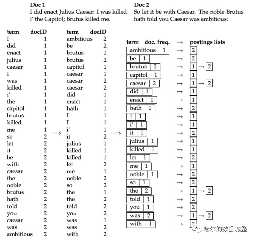 倒排索引-单词到文档 Id 的关系