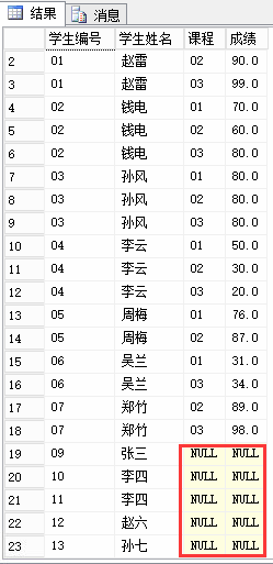 LEFT JOIN 关键字会从左表 (Student) 那里返回所有的行,即使在右表 (Sc) 中没有匹配的行。