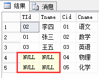 SELECT t1.*,t2.Cid,t2.CnameFROM Teacher t1 RIGHT JOIN Course t2on t1.TId=t2.TId