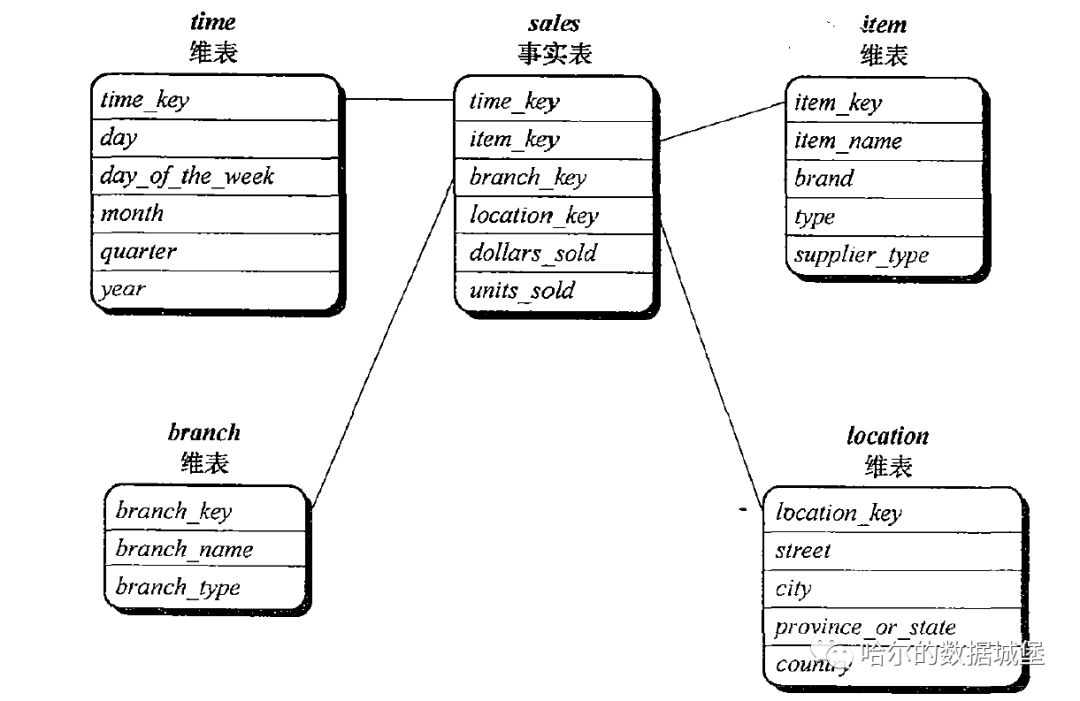 维:的具体描述信息记录在维表,事实表中的维属性只是一个关联到维表的键,并不记录具体信息。
