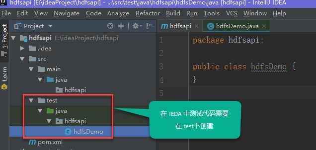 下面我们编写 mkdir() 方法在hdfs上创建目录进行测试: