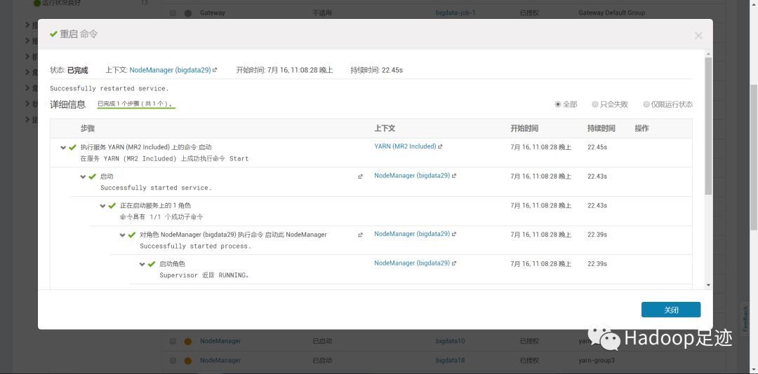 4、重启bigdata29的NodeManager角色实例,能够正常启动