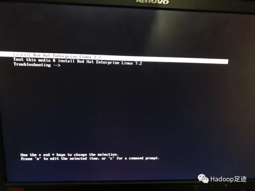 3、光标选中第一个“InstallRed Hat Enterprise Linux 7.2”,按“e”进入编辑界面。