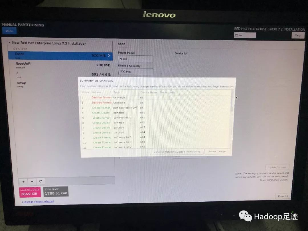 10、配置完成后,点击“Done”按钮,在弹出的提示框中,点击“Accept Changes”,然后再次点击“Done”,返回“INSTALLATION SUMMARY”界面。
