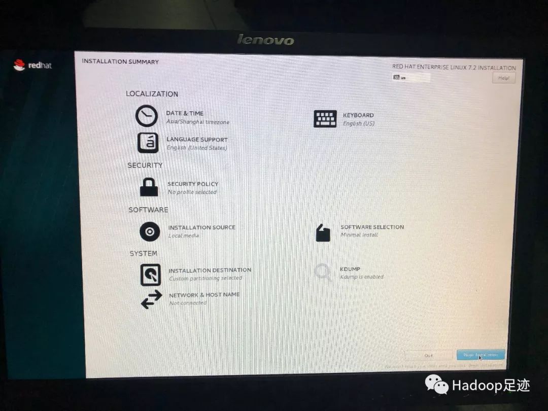 2、进入“INSTALLATION SUMMARY”(安装摘要)界面,该界面可设置一些自定义配置。
