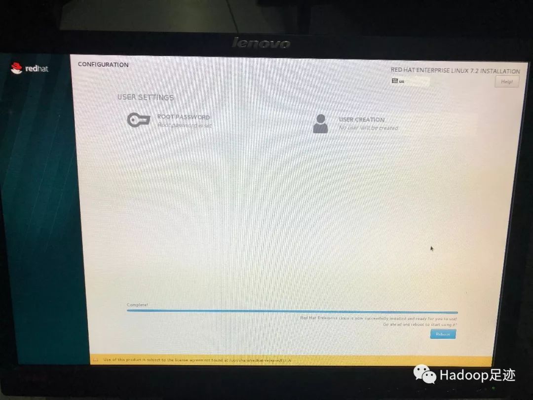13、设置root密码完成后,等待系统安装完成,重启服务器即可。