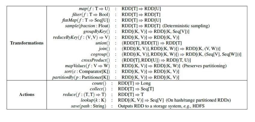 •常见的操作:比如groupByKey、reduceByKey、 sort、partitionBy等;