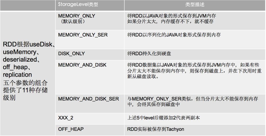 2)cache()过程是将RDD persist在内存里,persist()操作可以为RDD指定StorageLevel。