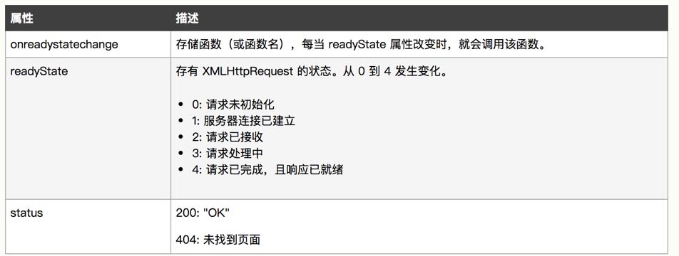 下面是 XMLHttpRequest 对象的三个重要的属性:
