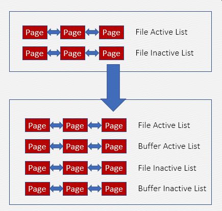 Cache与Buffer实际上共用File LRU链表,使用相同的内存回收策略。这也是为什么Buffer总是比Cache小很多的原因,因为抢不过嘛。