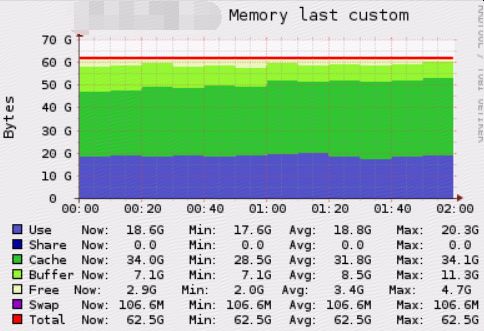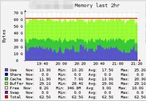 优化后,Cache平均占用13G,Buffer平均占用29G,总占用约42G;