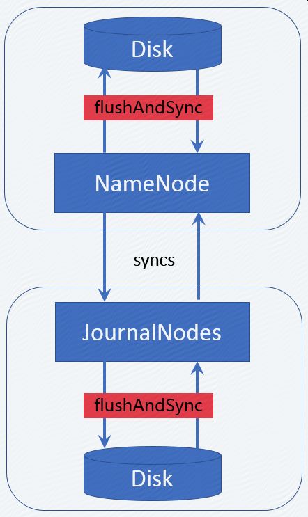 NameNode在响应Client修改文件元数据的请求时,为保证元数据的原子性,需同步地向JournalNodes传输Editlog(小文件),JournalNode在接收到Editlog后同步地写入本地文件系统,同时NameNode也需要将Editlog写入本地文件系统。为了保证每一条Editlog写入磁盘,NameNode和JournalNode在写入Editlog时调用flushAndSync(),如下图所示,此过程消耗了大部分时间。虽然EditLog可以批量传输、批量写入文件系统,但是如果这个过程耗时过长,还是会严重影响NameNode的OPS。