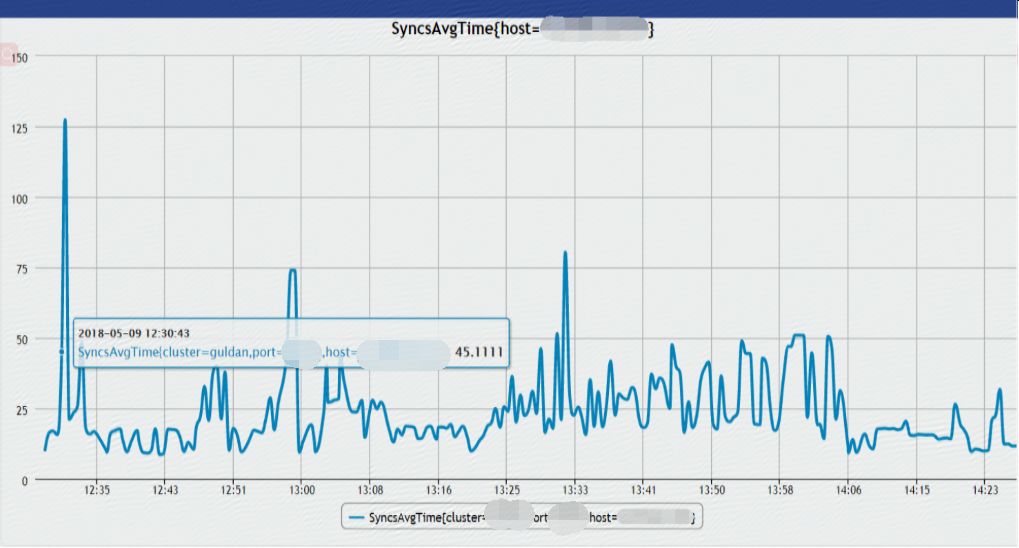 NameNode有相应的指标来衡量同步EditLog的平均延迟时间,下图是优化前的记录,Syncs时间普遍大于20ms,而且波动很大,对QoS会产生严重的影响。