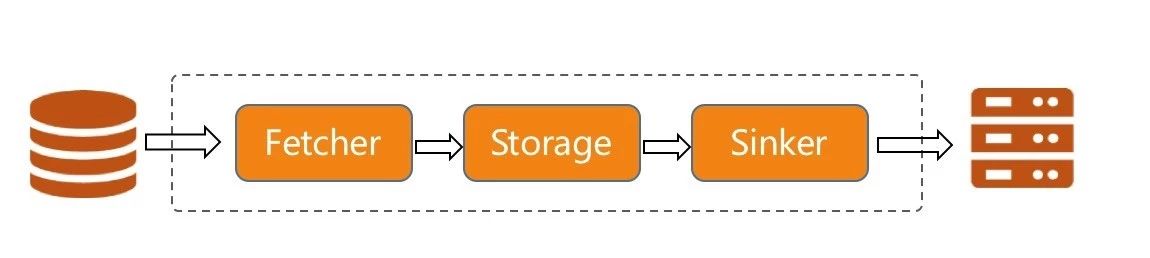 Fetcher负责抽取数据,Sinker负责写入数据,Storage为缓存层。