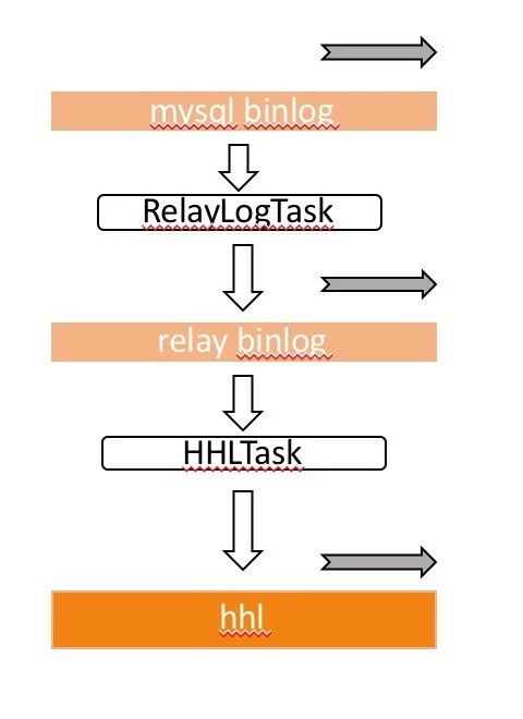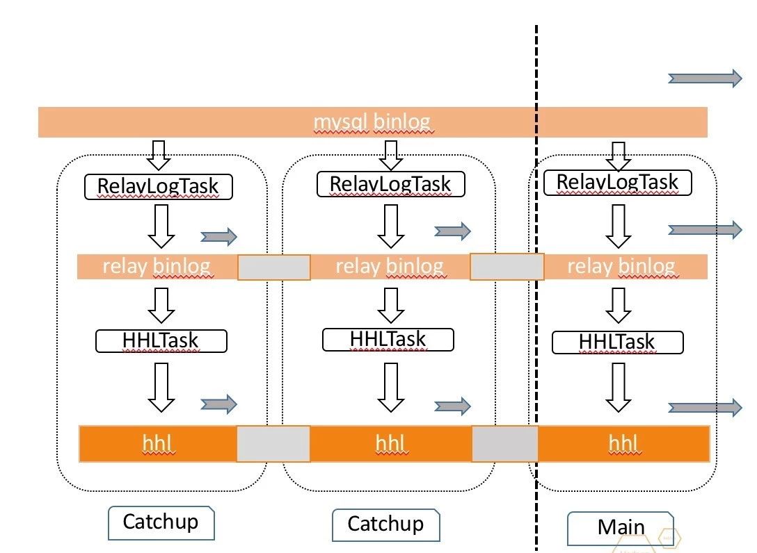 RelayLogTask负责拉取binlog;HHLTask负责解析Binlog,并将解析出的数据变更事件封装为易使用的消息体,最后存入hhl中。