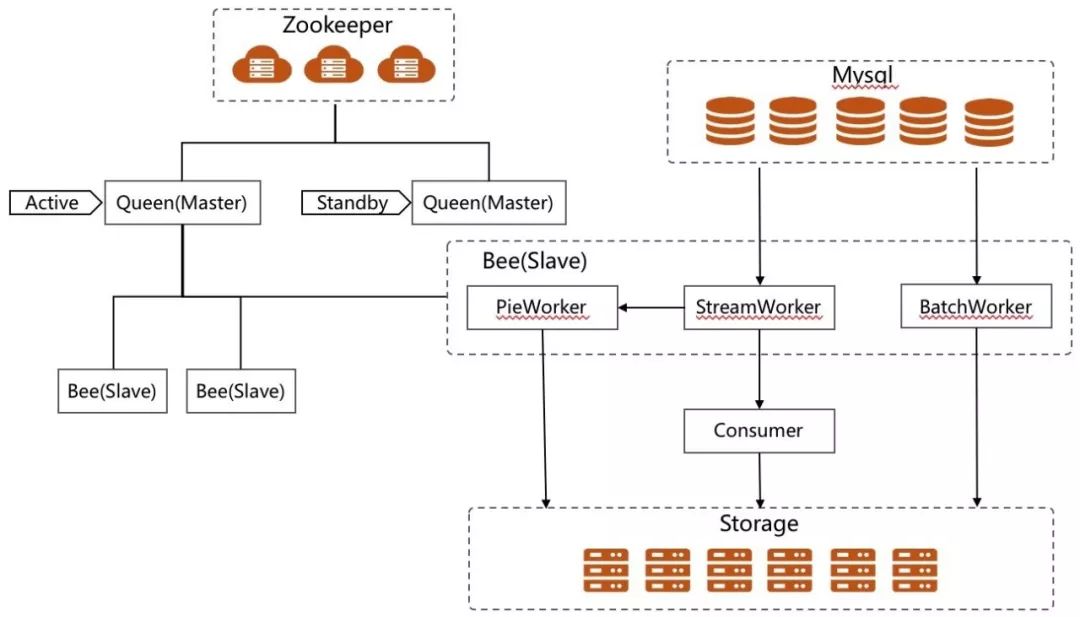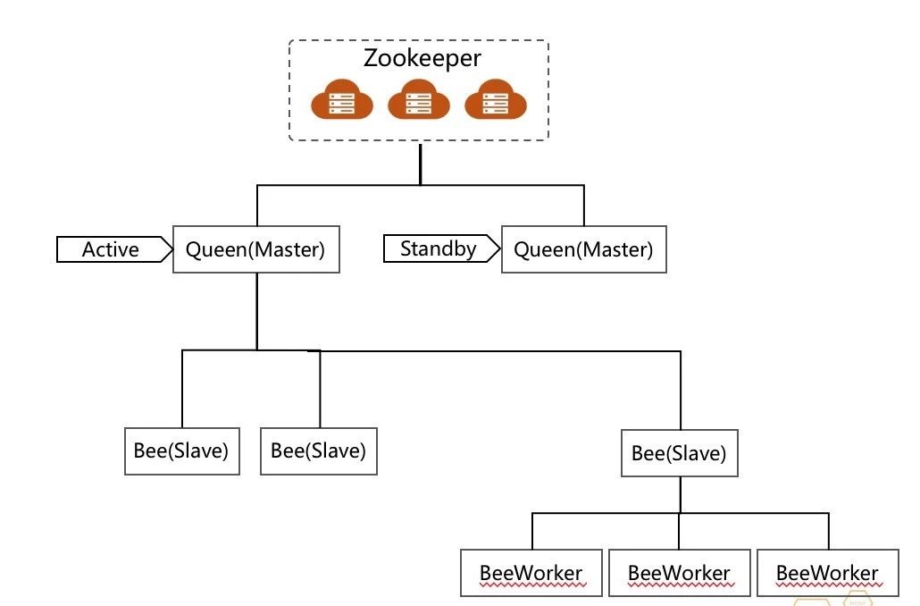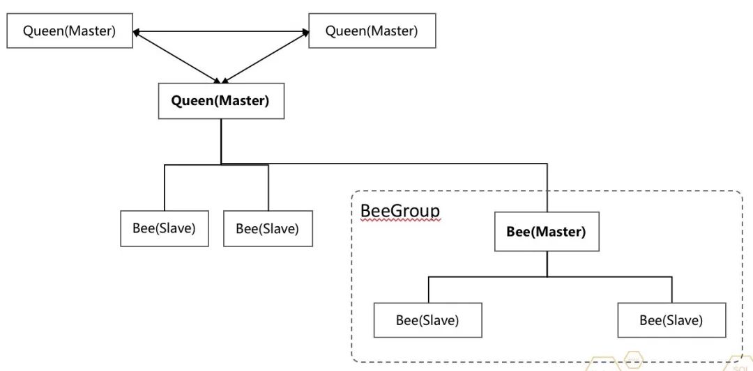 Queen负责作业的分片,调度;Bee负责任务的具体执行(任务由作业分片后得到)。