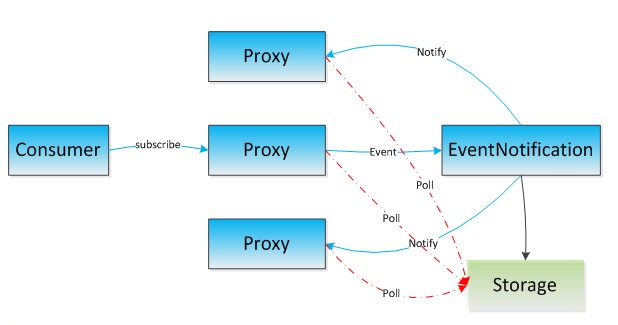 Proxy和EventNotification保持长连接,接收到来自Proxy的事件之后会通知连接到EventNotification的所有Proxy