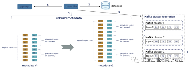 3.控制器重建生产者的元数据,从物理集群中移除集群1。