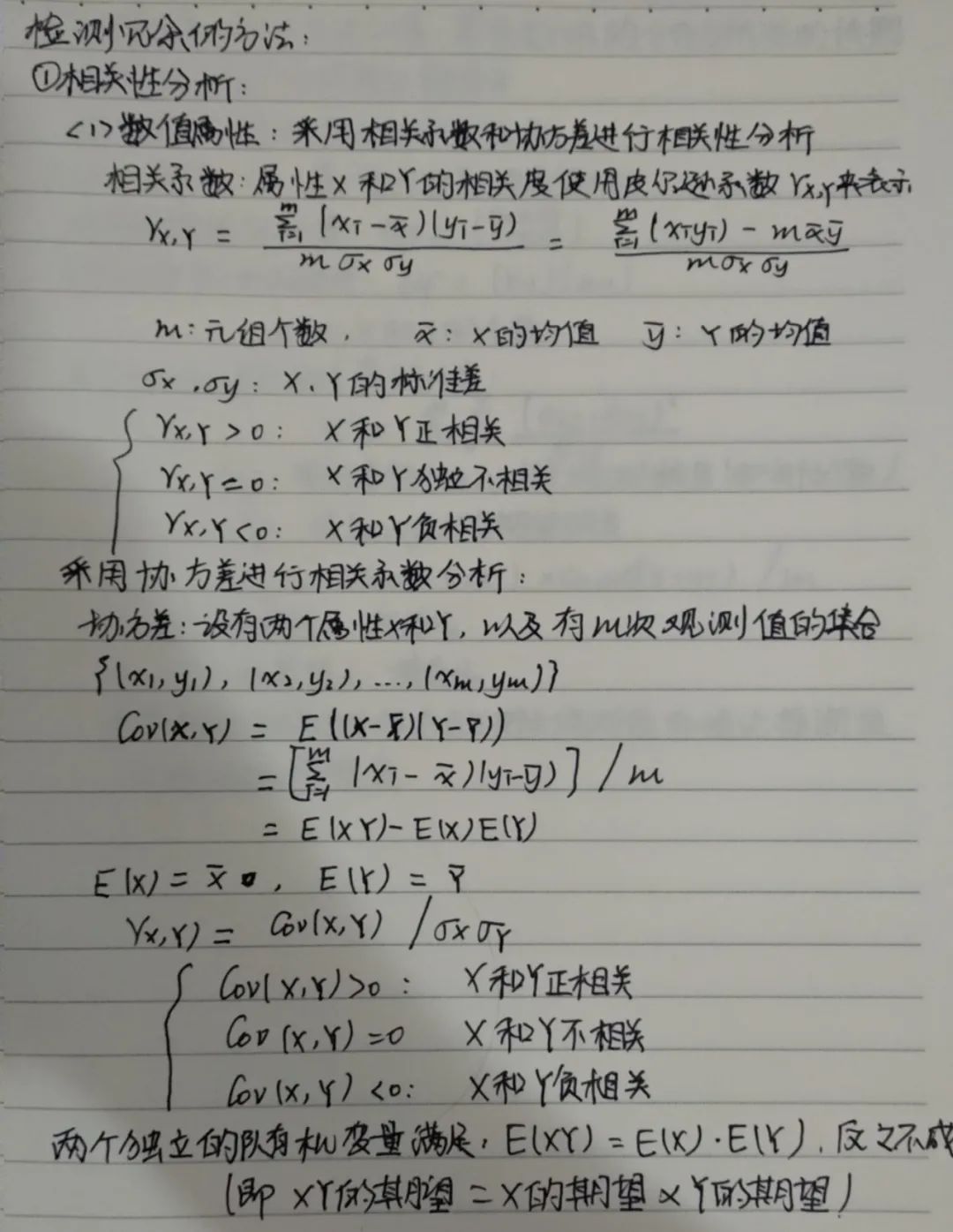 数值属性:采用相关系数和协方差进行相关性分析