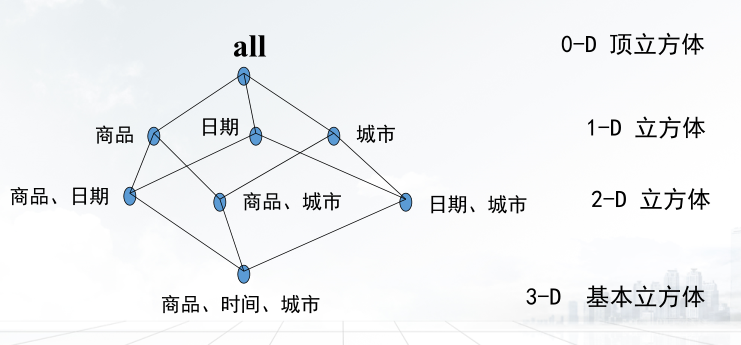 ④方体的格:每一个数据立方体。