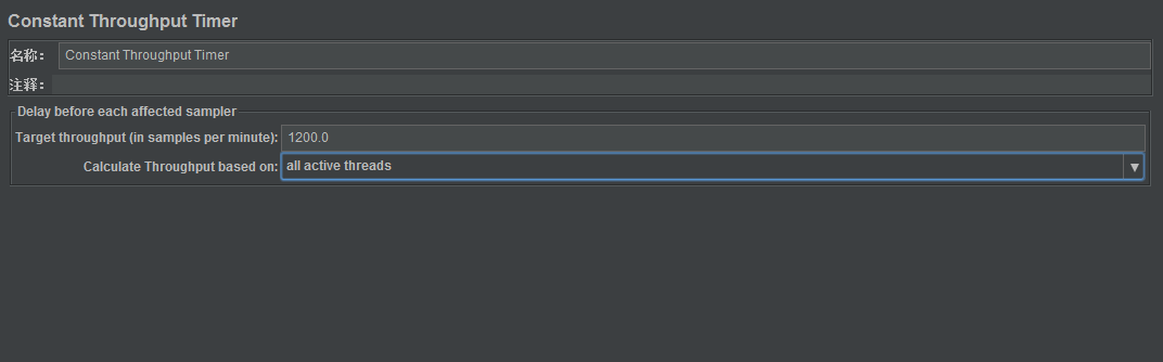 All active threads in current thread group :设置的target Throughput将分配在当前线程组的每一个活跃线程上,当测试计划中只有一个线程组时,该选项和All active threads选项的效果完全相同。