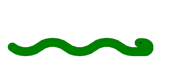 #画蛇import turtledef drawSnake(rad, angle, len, neckrad):for _ in range(len):turtle.circle(rad, angle)turtle.circle(-rad, angle)turtle.circle(rad, angle/2)turtle.forward(rad/2) # 直线前进turtle.circle(neckrad, 180)turtle.forward(rad/4)if __name__ == "__main__":turtle.setup(1500, 1400, 0, 0)turtle.pensize(30) # 画笔尺寸turtle.pencolor("green")turtle.seth(-40) # 前进的方向drawSnake(70, 80, 2, 15)