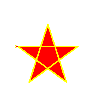 #画五角星import turtleimport timeturtle.pensize(5)turtle.pencolor("yellow")turtle.fillcolor("red")turtle.begin_fill()for _ in range(5):turtle.forward(200)turtle.right(144)turtle.end_fill()time.sleep(1)