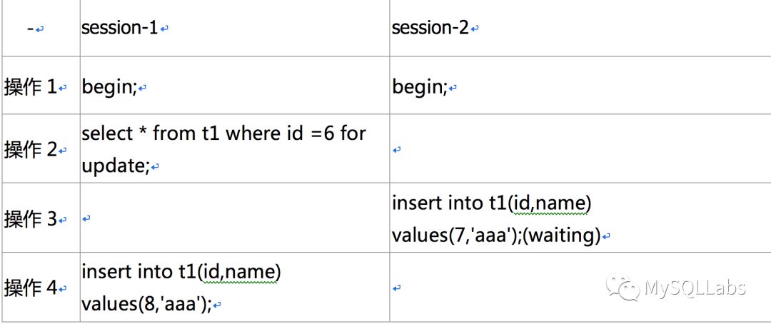 session-1中的事务通过操作-2获取对主键索引记录id为10(参照上文中的表中数据)的gap锁,随后session-2中的操作3会添加对主键索引记录id为10的gap锁,带有插入意向属性,并且会被阻塞,session-1继续操作4的插入操作,会添加对主键索引记录id为10的插入意向锁,此时与session-2中的锁是不冲突的。