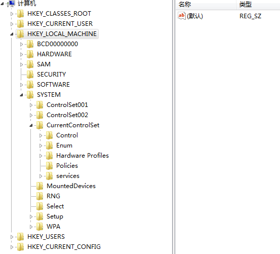 HKEY_LOCAL_MACHINE 中存储的是系统相关的信息,比如:驱动、服务等。