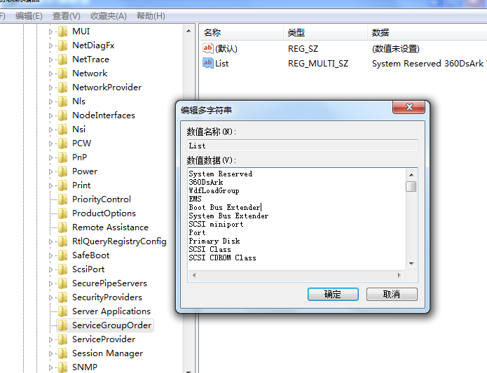 7 Type:服务的类型,可取值为,1:设备驱动程序;2:内核模式的文件系统驱动程序;4:已废弃;8:文件系统识别器驱动程序;16:该服务运行在一个只能容纳一个服务的进程中;32:该服务运行在一个可容纳多个服务的进程中;256:允许该服务在控制台显示窗口,并接收用户输入。除了上面的Start 决定了加载顺序外,还有 Group 与 Tag 来共同作用决定驱动的加载顺序。在HKEY_LOCAL_MACHINE\SYSTEM\CurrentControlSet\Control\ServiceGroupOrder 键里,表明了一个组的概念,驱动是分组并按组来分别按顺序加载的,Group 决定了驱动是在哪一个组中,而 Tag 却决定了在同一个组的哪一个位置上。注意一下儿就会发现,Start 值为 0 的驱动基本上都是分到了*前的几个组中。