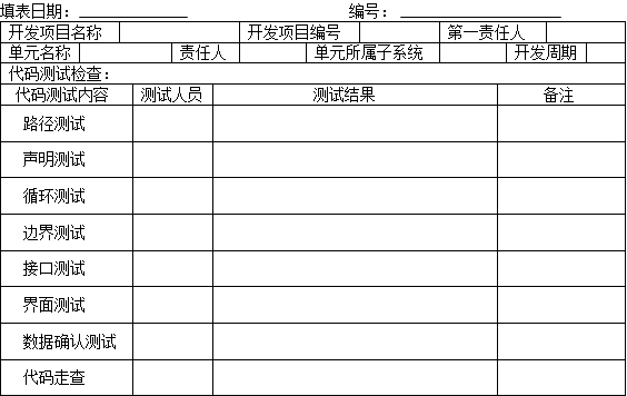 单元测试是每一个开发人员都必须去做的事,它将采用白盒方法来进行,为了跟踪单元测试的效果,对开发人员进行督促,对于一些重要的模块进行测试是很必要的。该表格就是用来让开发人员填写单元测试的结果的文档。