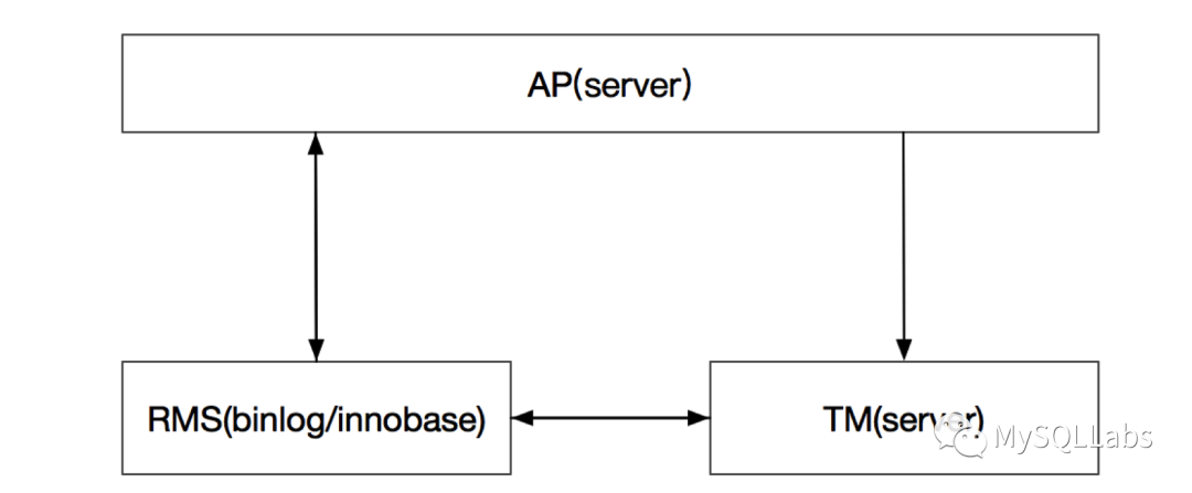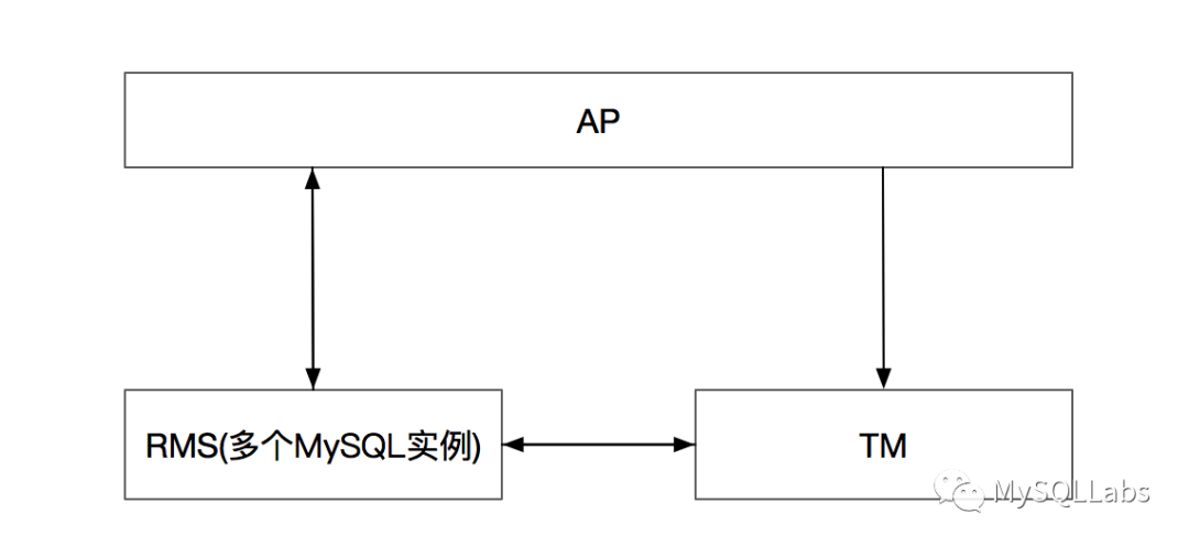 而在全局分布式事务中,MySQL实例对应到DTP中的RM,如下: